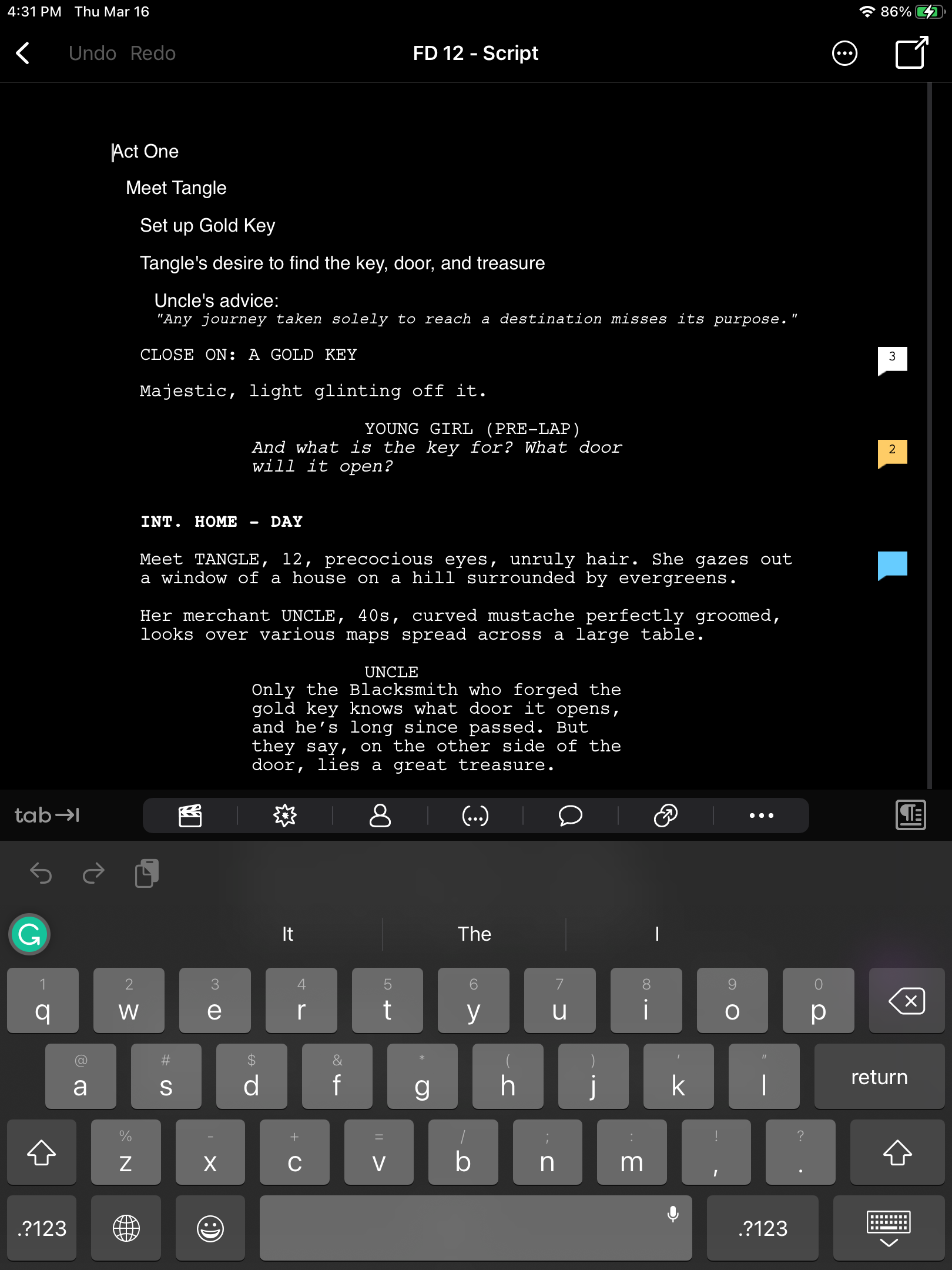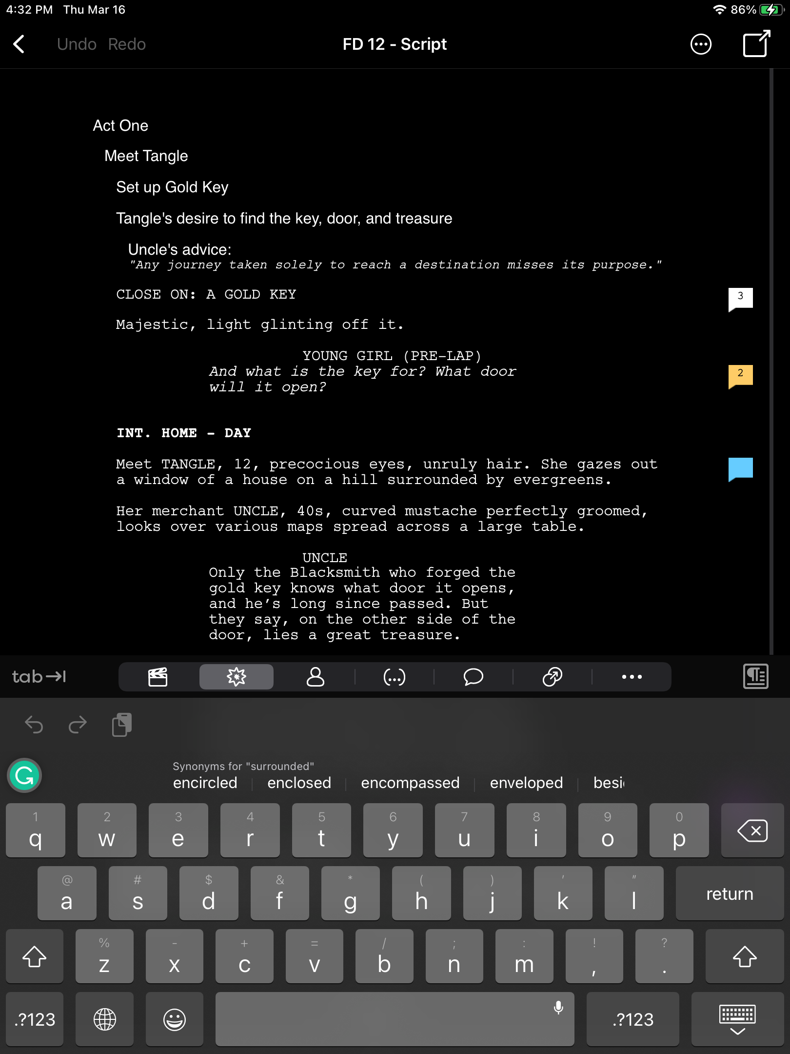 Wherever you travel, your script travels with you. Write and edit your screenplay on the go, send or share your files between multiple platforms, and always be on the same page with Dropbox and iCloud. Now with more features and an enhanced UI for an improved experience, Final Draft Go is with you whenever creativity hits.