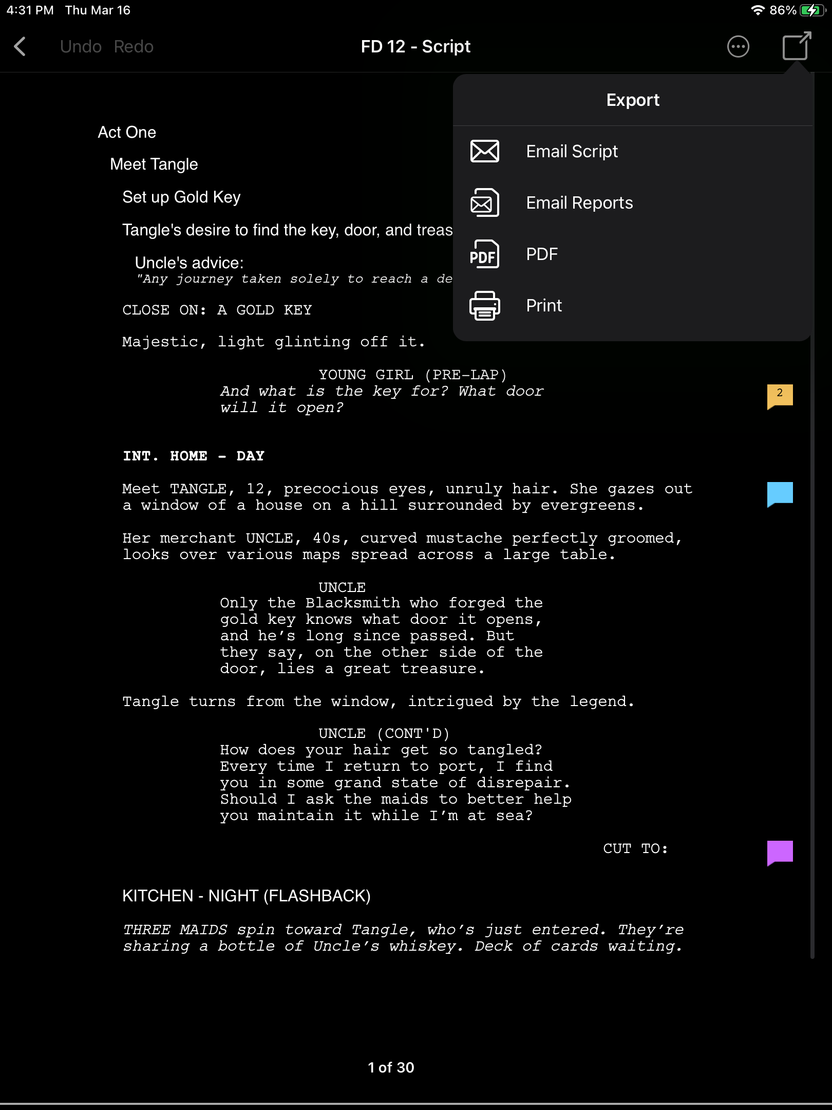 Save your script locally or sync it to Dropbox and iCloud. Synchronize your script to your iPad, iPhone, and desktop computer to keep your files up to date.