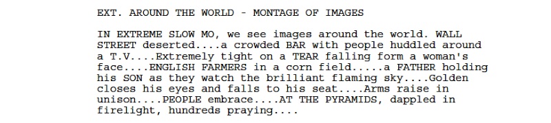 Within the same script, the writer offers a more extensive, but still simple, montage.