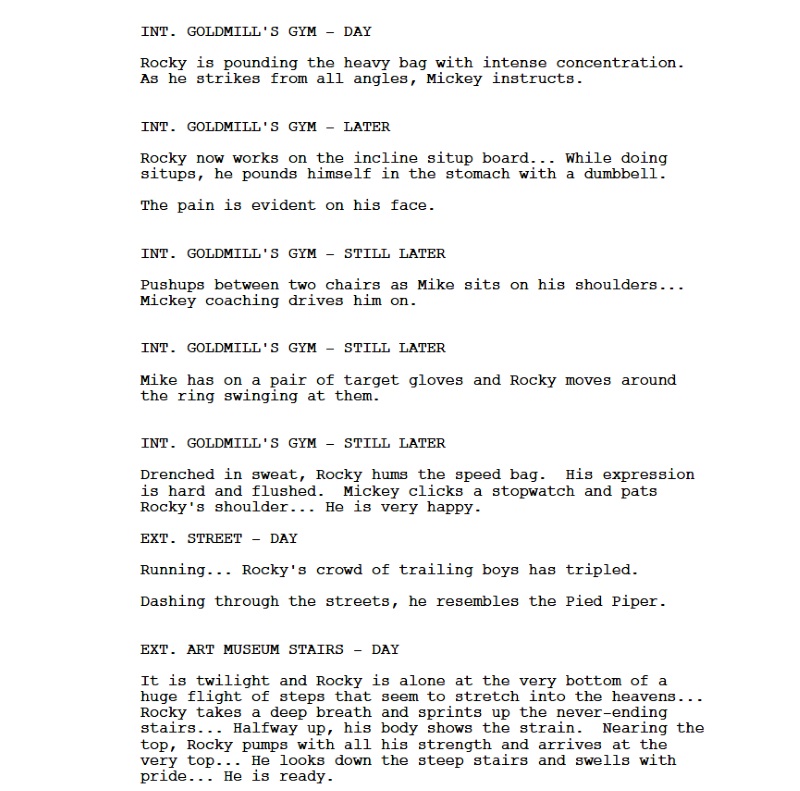 Here is how the original Rocky training montage was formatted in an early draft of the script.