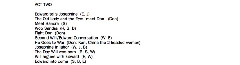 As you can clearly see, this outline is formatted in a way that is specific to the writer's needs only. August knew the detail of each scene but used simple notes to organize them.