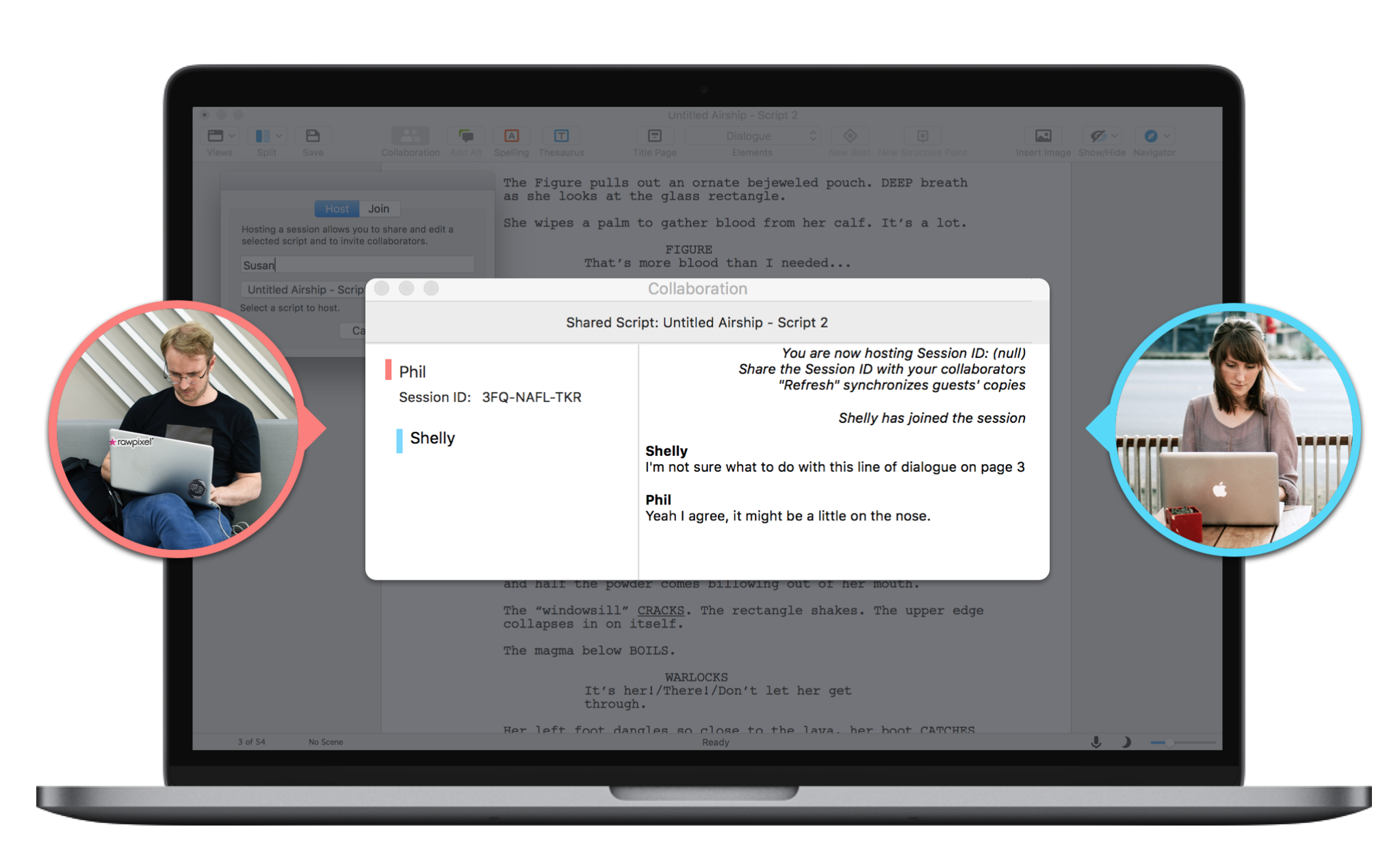 The most important change is the decidedly proprietary collaboration system. Final Draft creates a chatroom where you and your collaborators can sit and work together on a single document and the changes are visible on all copies of the text. You can also use the room to brainstorm ideas using the Beat Board view, essentially a cork board that makes it easy to put up ideas, scenes, or characters.