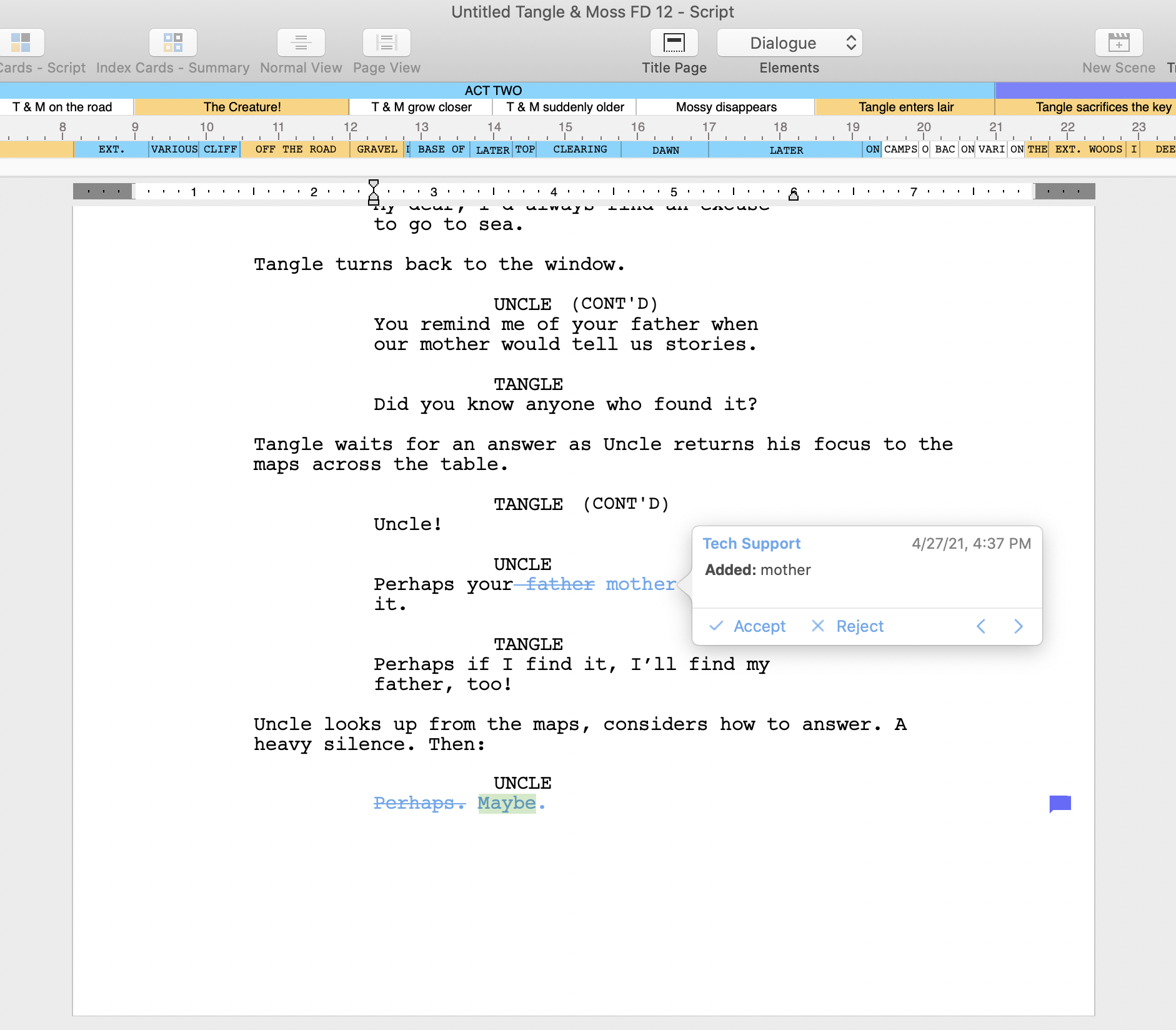Before your script goes into pre-production, it’s almost always best to use Track Changes, and later switch to Revision Mode.