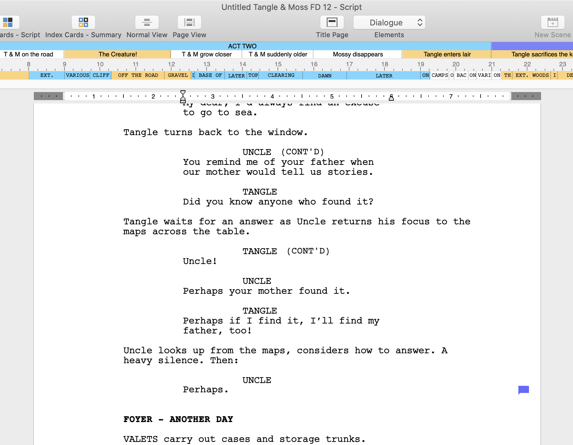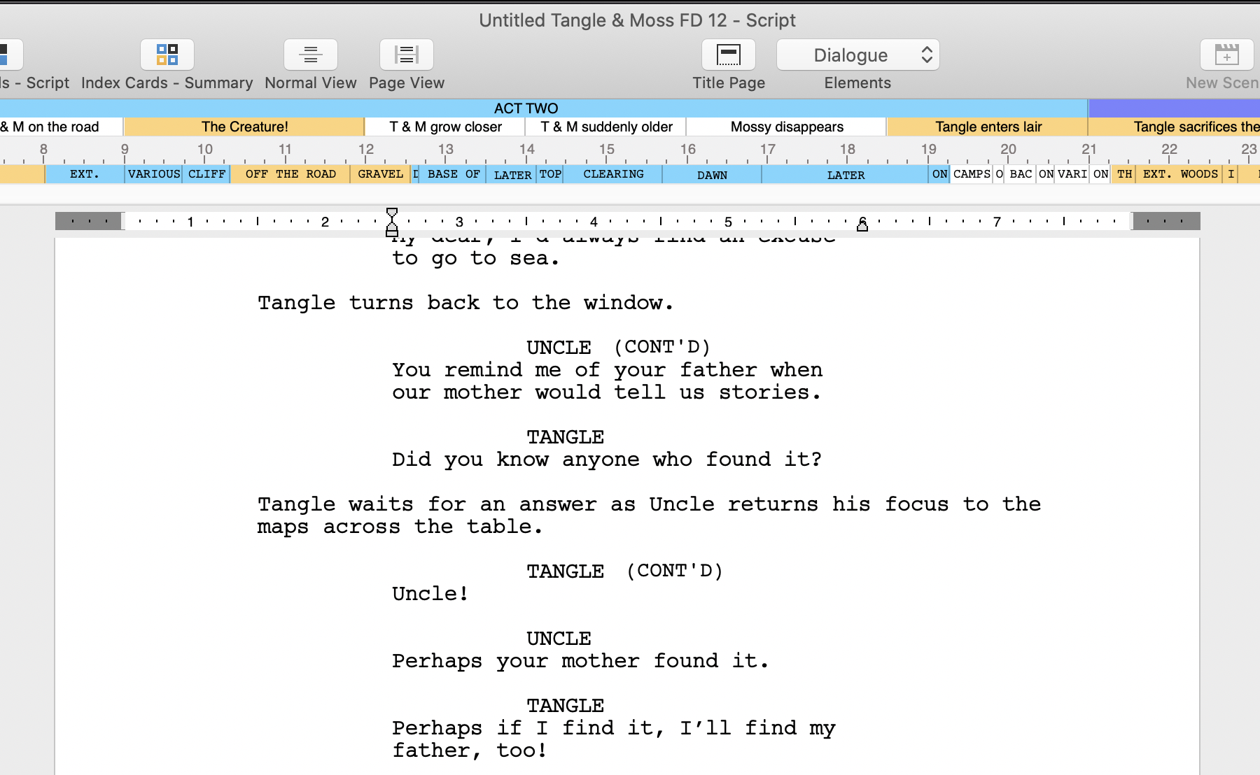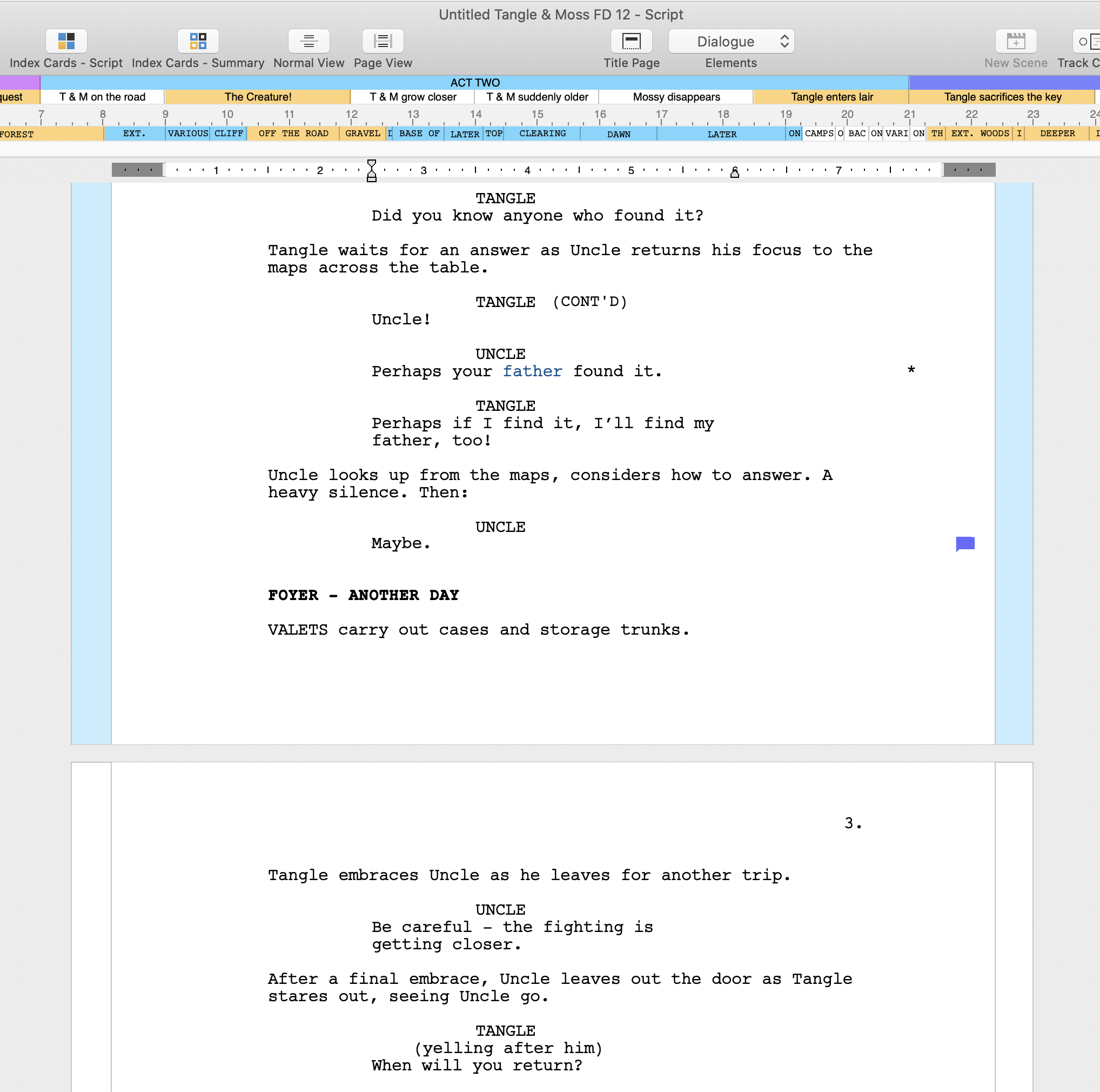 Once that round of changes is made, a script coordinator or producer would update to the next revision set — usually pink revisions — thus setting up the script for the next round of changes. It’s not uncommon for in-production scripts to go through 20 or 30 revision sets, and Final Draft 12 has the ability to handle that many and more!