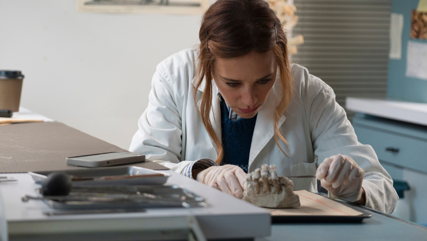In the present-day storyline, Claire studies ancient remains from Neanderthals. Like the ones we follow in the first story. What connects them is curiosity, the power of human survival and the acorn she found with the ancient human remains.