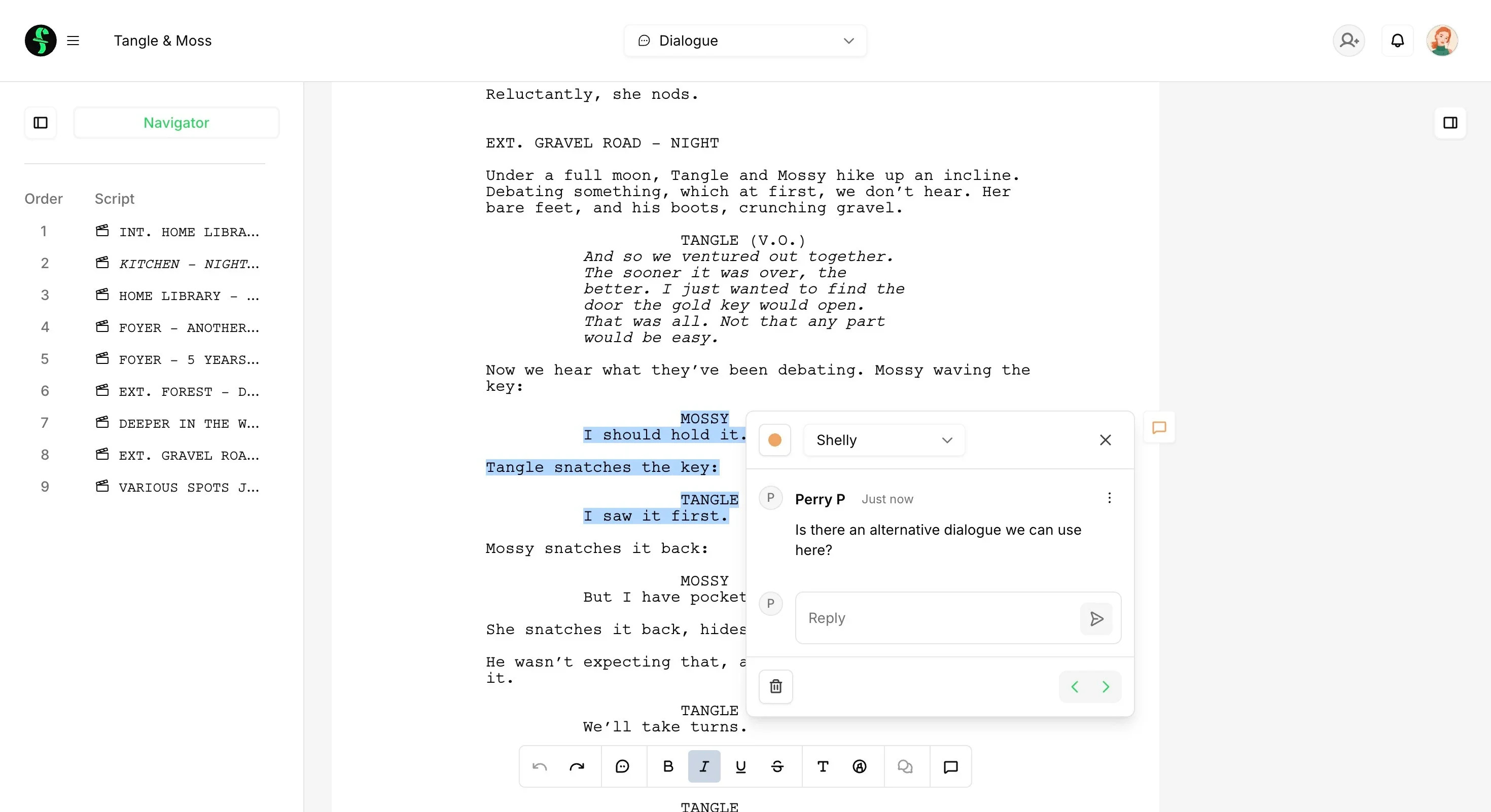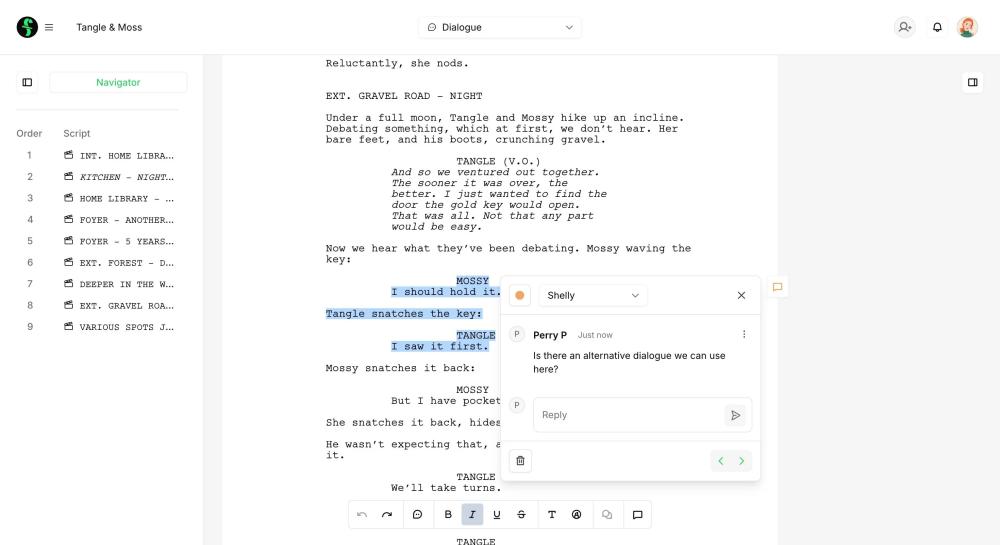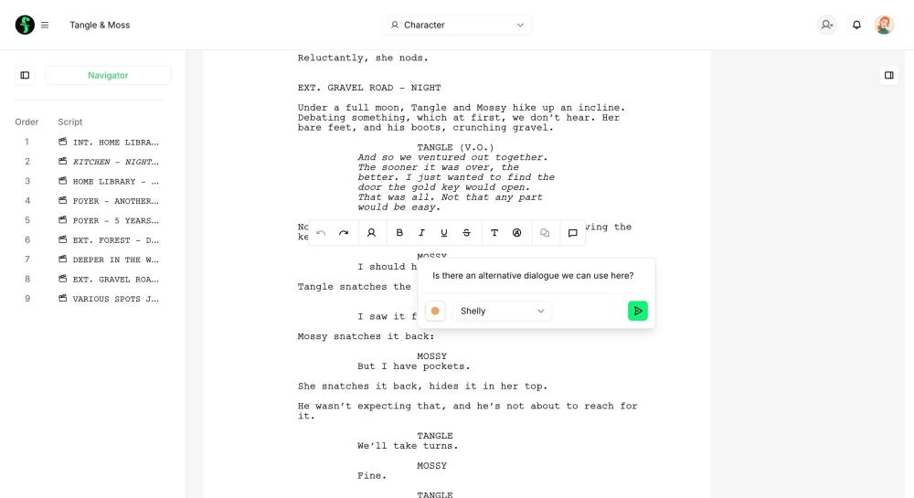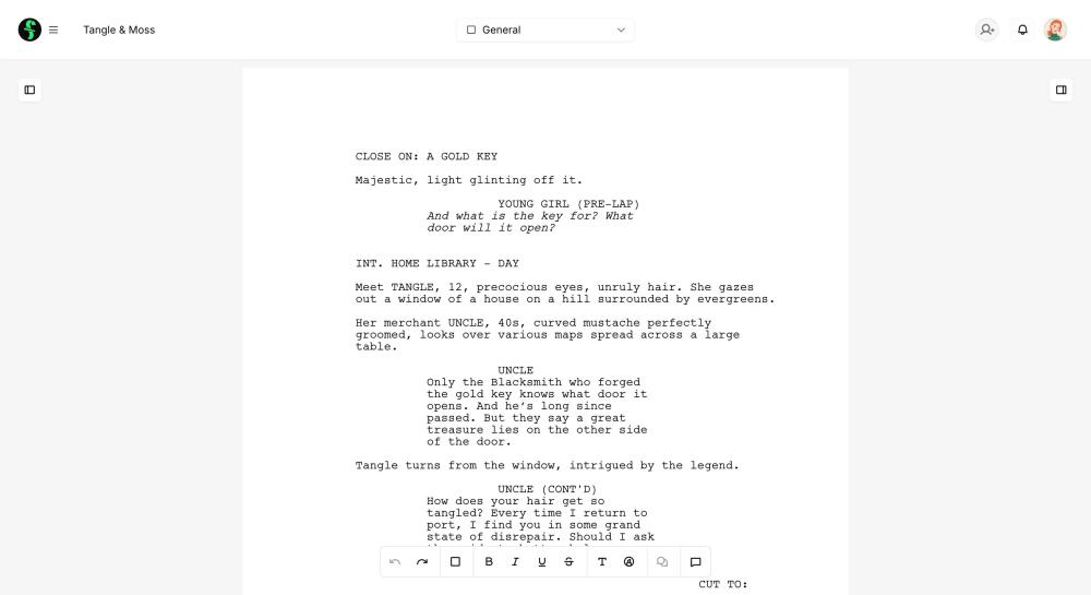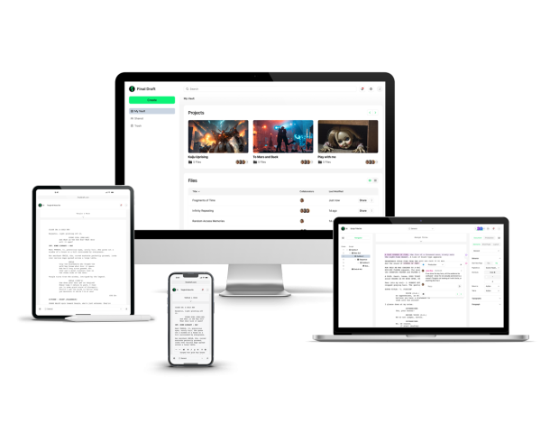 With a clean, straightforward writing interface, writing online in Final Draft Cloud keeps the focus on your story, not complicated tools. Everything you need to write, organize, and share your scripts lives in one easy-to-use online workspace. Your projects are securely stored in the cloud and accessible anytime, anywhere — on desktop, tablet, or browser — so you can write whenever inspiration strikes.